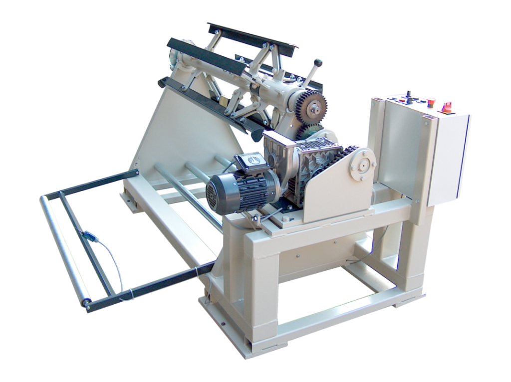 An unwinding coil or decoiler/uncoiler, contains a coil with sheet material. The core can change in diameter so that the coil can be clamped and remain fixed on the shaft. A decoiler comes in many forms; manually operated, or electrically driven, or double mandrel, with straightener, straightener and feeder. Depending on the model, options include: