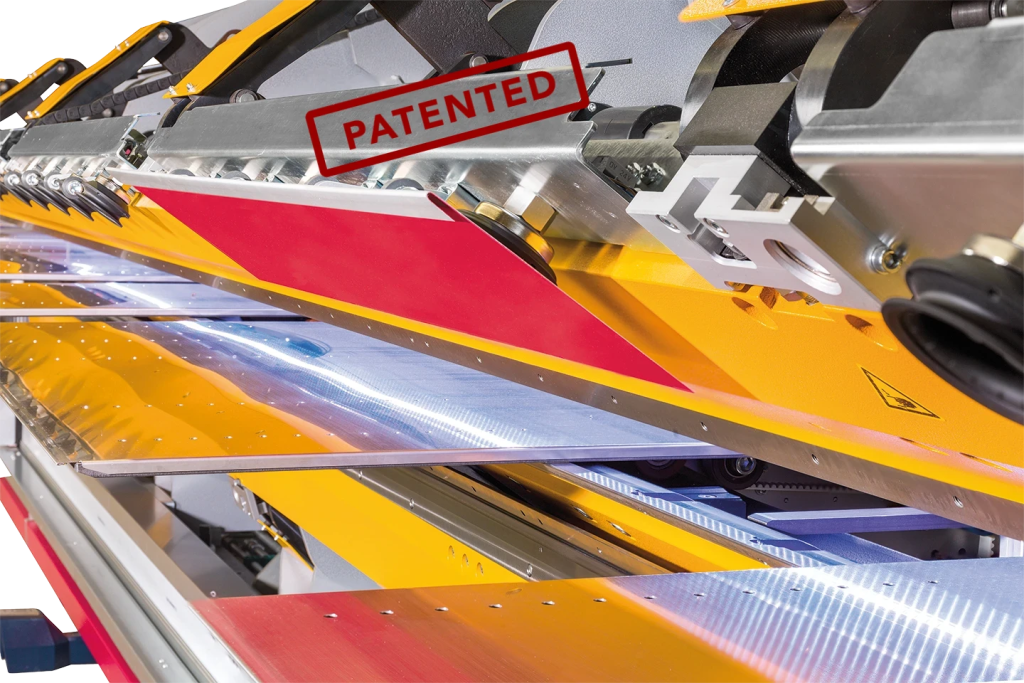 De Multi Head Side Loader TD kan tot 4 stroken tegelijk laden in één snelle beweging wanneer deze in de 4-sectiemodus werkt. Dit betekent kortere laadtijden en een aanzienlijk hogere productiviteit. Dit is meer dan 40% sneller! Elke rij van de Multi Head Side Loader TD is uitgerust met een vacuüminjector en een ultrasone sensor voor een nauwkeurige hoogtemeting van uw materiaal. Onze gebruiksvriendelijke software laat u kiezen of u één of meerdere platen wilt laden en begeleidt naar de optimale positie.