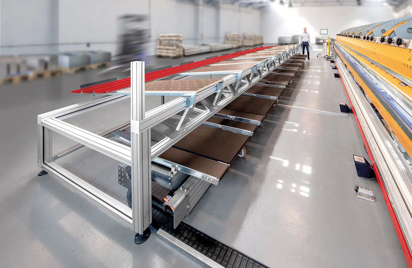 De complete plaatbewerkingsunit kan automatisch onder de buffer met schuine rand worden opgeborgen. Hierdoor kunnen orders opnieuw worden verwerkt – zelfs zonder volledige automatisering.