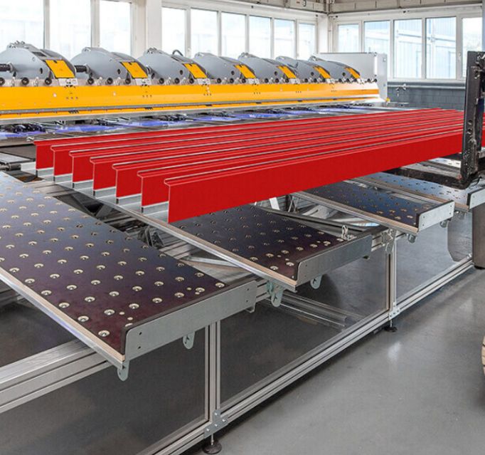Na het zetten worden de afgewerkte plaatmetalen profielen automatisch door de machine opgepakt en naar de buffer met schuine rand getransporteerd, waar ze gemakkelijk kunnen worden verwijderd.