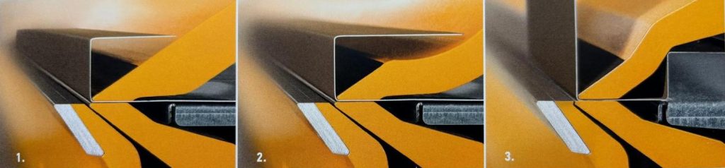 Een dynamisch, automatisch bomberingssysteem voor de bovenbalk garandeert uniforme hoeken over de volledige lengte van de gevouwen delen. Deze innovatie elimineert volledig het ongewenste effect van overbuiging aan de uiteinden van het profiel (het “banaaneffect”).